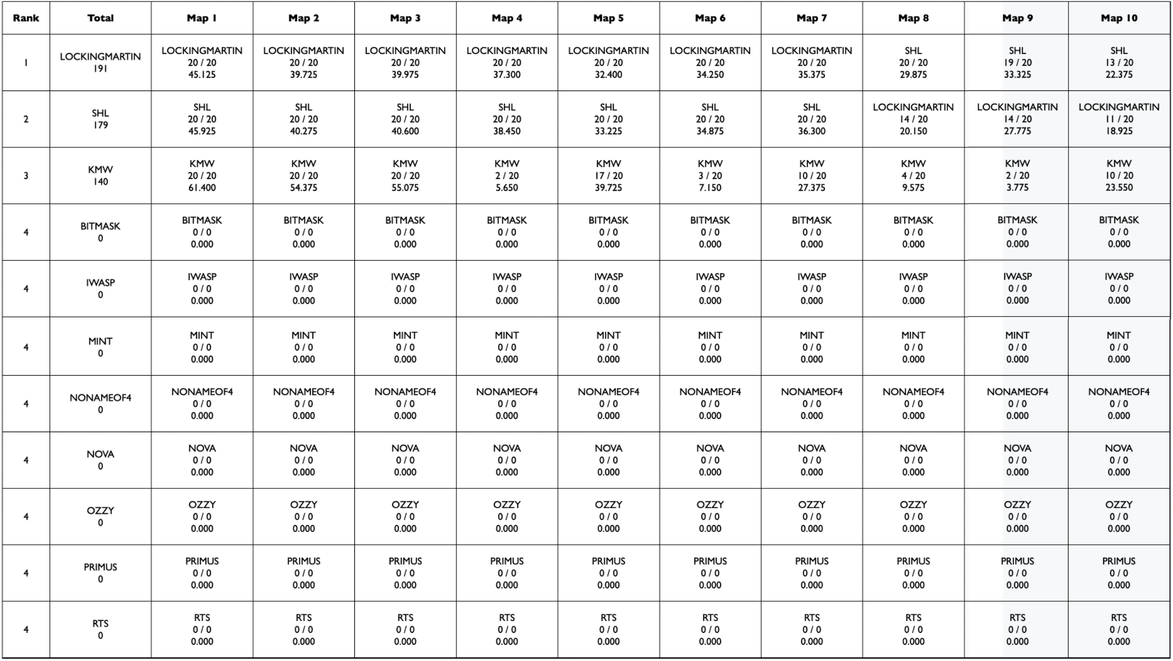 Team Name | Member 1 | Member 2 | Member 3 | Member 4 | |